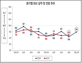 경영 부문별로 보면 매출 전망지수는 76으로 전 분기 대비 7포인트, 영업이익은 75로 9포인트 상승했다. 한·미 관세 협상 마무리와 신년 수주 확대에 대한 기대감이 반영됐지만, 소비 부진과 원자재 가격 상승 부담이 지속되면서 두 지표 모두 기준치를 넘지 못했다.