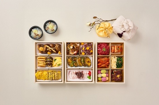 3단 도시락은 오랜 시간 정성껏 고아낸 보양식 한방 갈비찜을 비롯해 모둠전 5종(표고·새우·녹두·생선·육전), 전복구이, 해물 잡채, 문어숙회, 나물 2종 등 손이 많이 가는 전통 설 메뉴부터 유과, 떡 등 전통 간식까지 다채롭게 구성됐다.