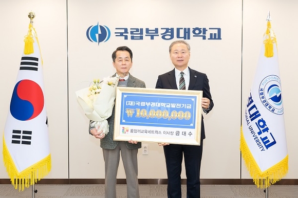 국립부경대학교는 4일 오전 대학본부 접견실에서 금대수 꿈잡끼교육네트웍스 이사장 발전기금 전달식을 개최했다고 밝혔다.