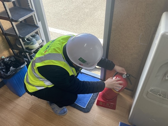 BPA 점검반원이 소화기를 점검하고 있다.(사진=BPA 제공)