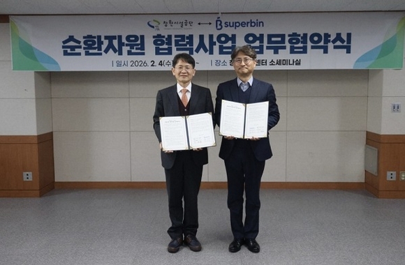 이번 협약에 따라 공단은 창원축구센터 시범사업을 시작으로 고품질 재활용품의 수요·공급 연계, 사업 성과 관리, 협업 체계 구축 등을 총괄한다. 수퍼빈은 자체 수거·운반 인프라를 활용해 고품질 재활용품 수거와 함께 회수 보상 포인트(현금 환산 가능)를 지급할 예정이다.