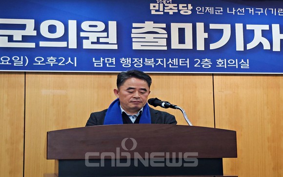 더불어민주당 박응삼 전 군의원이 6·3 지방선거 인제군의원 출마기자회견을 하고 있다. (사진=최성락)