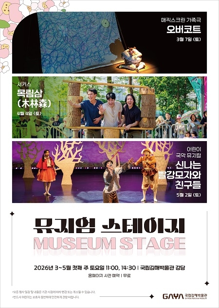 국립김해박물관은 복합 문화예술 거점기관으로서 지역민들의 문화향유 기회를 확대 제공하기 위해 내달부터 5월까지 매월 첫째 주 토요일에 ‘2026 뮤지엄 스테이지(봄)’를 개최한다고 24일 밝혔다.