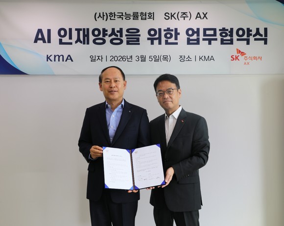 KMA 한국능률협회와 SK AX가 기업과 공공기관을 대상으로 한 AI 교육 사업을 공동 추진한다. 양측은 지난 5일, 서울 여의도 KMA 본회에서 AI 교육 프로그램 협력을 위한 업무협약을 맺고, 실무형 AI 인재 양성과 AI 활용 역량 확산에 협력하기로 했다.