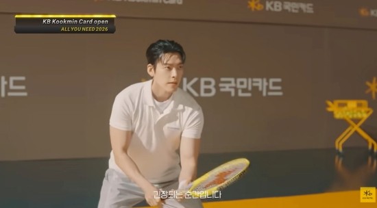 KB YOU Prime 카드 영상에서는 테니스 경기에 임한다. 김우빈이 1:1 경기에서 강속구를 경기장 바닥에 내리꽂자 ‘혼자 쓸 땐 일상 할인’, 4:1 경기에서 놀라운 경기력을 보여주자 ‘함께 쓸 땐 가족 할인’이 가능하다는 점이 강조된다. 족발, 종이 장바구니 등이 함께 영상에 나타나 웃음을 짓게 한다.